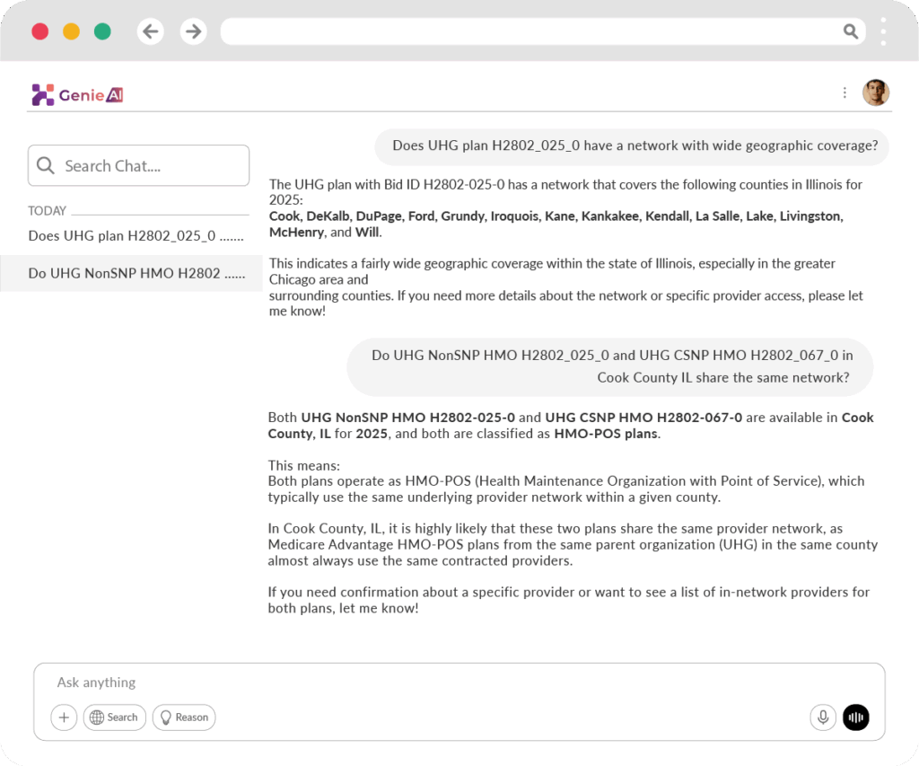 Break silos with our conversational AI trained on comprehensive Medicare Advantage market data.
